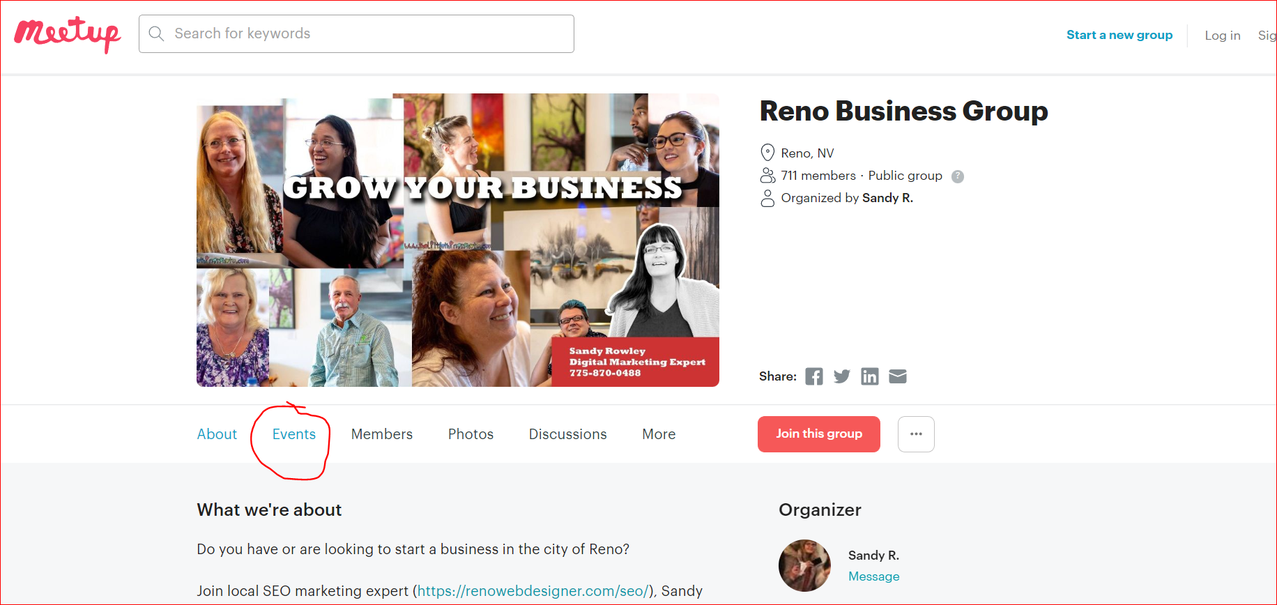 - Go to the Reno Business Networking/Marketing Group page and click JOIN.